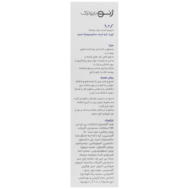 کرم ترک پا ژنوبایوتیک، حاوی مواد موثره سالیسیلیک اسید، کره انبه و اوره