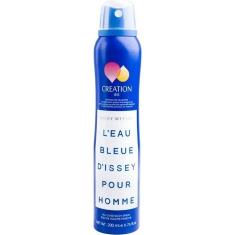 اسپری مردانه ISSEY MIYAKE کریشن ایریس CREATION IRIS با طبع تند و گرم و رایحه دلپذیر مناسب استفاده روزانه آقایان می باشد. این اسپری از رایحه عطر پرطرفدار Issey Miyake L’Eau Bleue d’Issey Pour Homme برگرفته شده است. این محصول بدون ایجاد حساسیت بدن را در طول روز خوشبو نگه می دارد و حس شادابی و طراوت را در آقایان ایجاد می کند