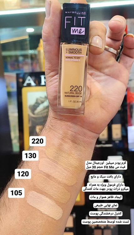 کرم پودر میبلین فیت می شیشه ای مناسب پوست های خشک | Maybelline Fit Me Luminous + Smooth normal to dry skin